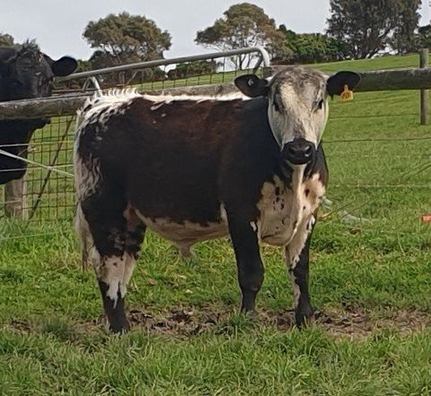 Young bull with great breeding. Royal Melbourne Show winning bull Champagne Pretender as the sire. Solid well marked Speckle Bull.